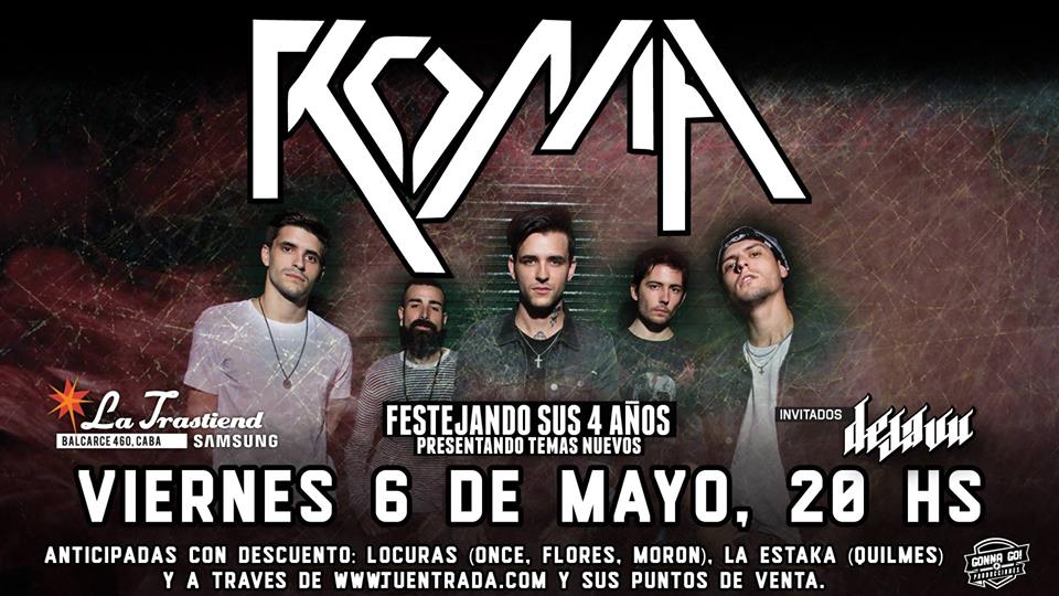 Roma festejo cuatro años de vida y despidió «Hijos de padres separados» el viernes pasado en La Trastienda. La banda oriunda de San Martín mostró en un show a puro éxtasis el crecimiento obtenido en estos cuatro años de carrera. Ante un público efervescente, en su mayoría adolescentes, Roma compartió canciones de todas placas, regalo un tema nuevo y ademas varios invitados fueron parte de la velada.