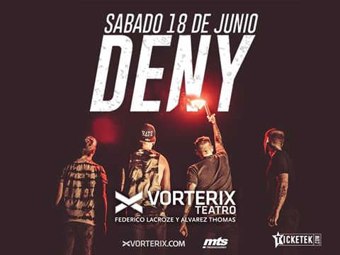 Siendo las 21.15 hs Deny salió a escena, con una puesta minimalista con una pantalla de fondo pero con mucha euforia en el pecho. No dudaron ni un segundo en arrancar con «Una razón» donde su cantante Nazareno Gomez Antolini se desplazaba por todo el escenario, y fue el inicio de los interminables mosh, pogos, coreos y todo el agite que merece un show de despedida de un disco.