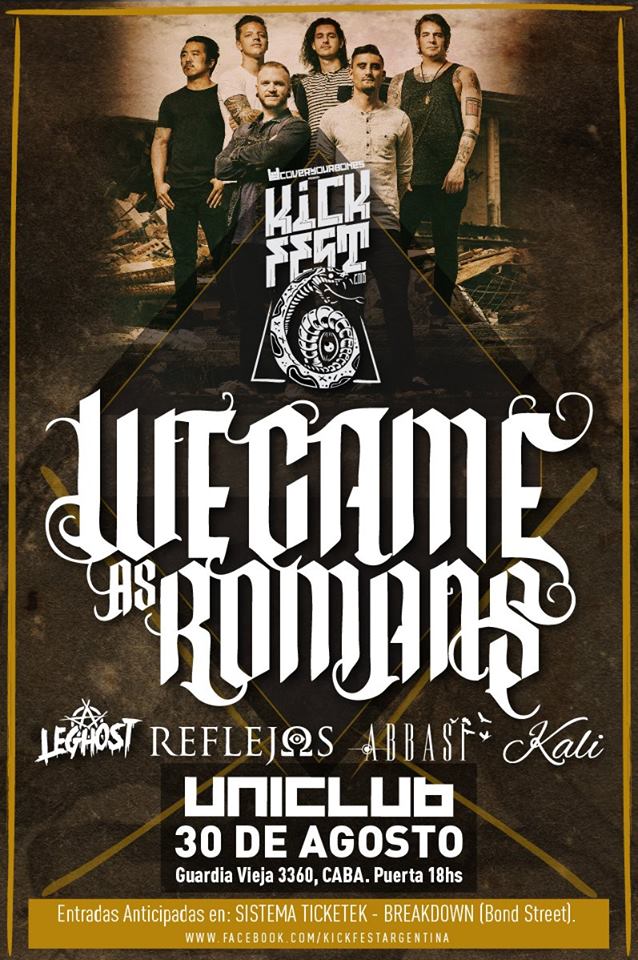 ¿Quién dijo que las secuelas no pueden ser mejores que las primeras? ¿Cuántas bandas lograron satisfacer a todo su público en una noche? ¿Quién dijo que un show no se pueda vivir tan intensamente? Pocas son las bandas que arrancan muy arriba un recital y lo mantienen durante toda la jornada. Los chicos de We Came As Romans llenaron Uniclub el martes 30 de agosto, despidiendo el mes de la mejor manera. Después de cuatro años de espera, los músicos se presentaron con tres bandas que los acompañaron toda la noche para hacer de ésta, un hecho inolvidable.