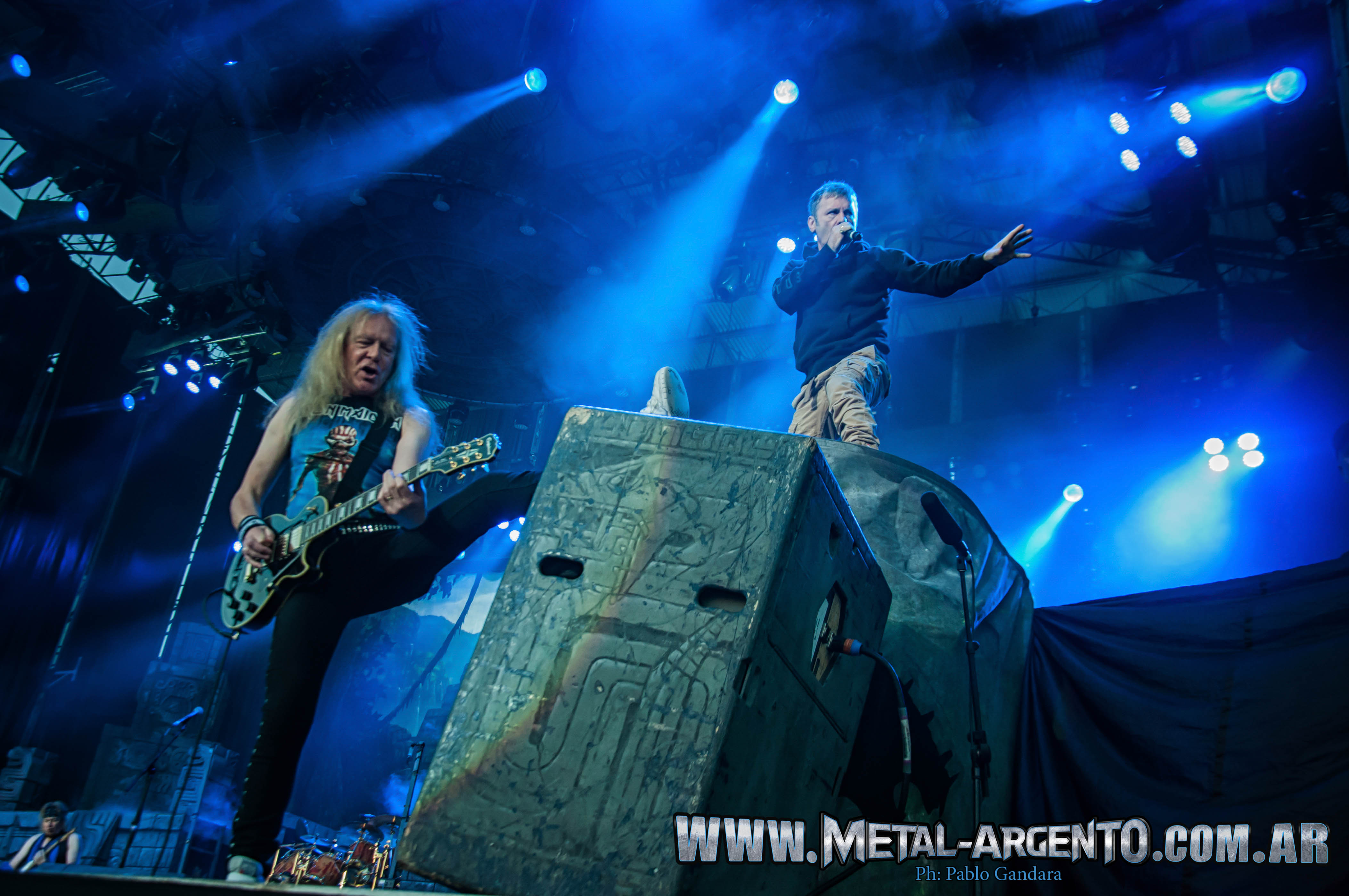 Pocos eran los que aún no conocían la propuesta que Iron Maiden nos tenían preparada, y es que no faltó nada de lo que ya habíamos visto de ellos tanto alrededor del mundo como en festivales europeos: esas lianas colgando, piedras de reminiscencias de otro tiempo y esos fuegos que brotaban a sus anchas mientras la banda desplegaba una tras otra composiciones del más alto nivel. Como no podía ser de otra forma, Bruce Dickinson siguió tan o más teatral que siempre, y esas cabalgadas de Harris, las pentatónicas de Smith, Murray y Gers, y la invisible técnica de McBrain deleitarían a sus devotos durante dos horas de show del más alto nivel visual y musical. Y es que temas como “Powerslave”, “Hallowed Be Thy Name” o “Blood Brothers” siguen poniendo la piel de gallina como la primera vez. (Seria aburrido volver a escribirles tema a tema lo que fue sucediendo en el show, ya que la mayoría sabemos que los Maiden siguen una excelente rutina en sus giras, si queres leerlo, te recomiendo que leas la cobertura del Resurrection Fest)