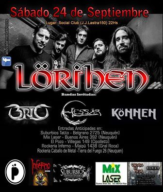 El sábado 24 de septiembre, fue una noche hermosa en la provincia de Neuquen donde se vivió un clima primaveral para recibir una fecha ansiada por casi 1 década desde la última vez que Lorihen pisó tierras Neuquinas. El lugar elegido fue el Social Club, un recinto cómodo, con todas las instalaciones necesarias, un escenario cercano a la gente, como todos queremos e incluso como muchos músicos lo prefieren.Arrancaron las dos bandas invitadas, primero fue el turno de Brío, una banda de heavy/power que arrasó con su contundente batería, sus dos guitarras super afiladas y su bajista nuevo que se encontró a la altura. La banda esta conformada por Bruno Moretti en voces, Marcos Torres en batería, Martin Seguel en primera viola, Rafael Uribe en segunda viola, Oscar Orcellet en bajo. Brío fue formada en el 2009 y ha sido telonera de Gamma Ray, Logos, Tren Loco, Icaro, Jezabel, Jason, Almafuerte, entre otras.