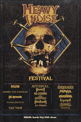 Los días 21, 22 y 23 de Octubre se llevará a cabo la primera edición del Heavy Noise Festival, un nuevo festival orientado a las ramas más extremas del metal. La cita será en el legendario Uniclub, venue que vio nacer y donde se desarrolló el Noiseground Festival, padre de esta nueva criatura de acero. El cartel está integrado por 17 bandas, ninguna elegida al azar, todas en actividad y con discos que merecen ser escuchados.