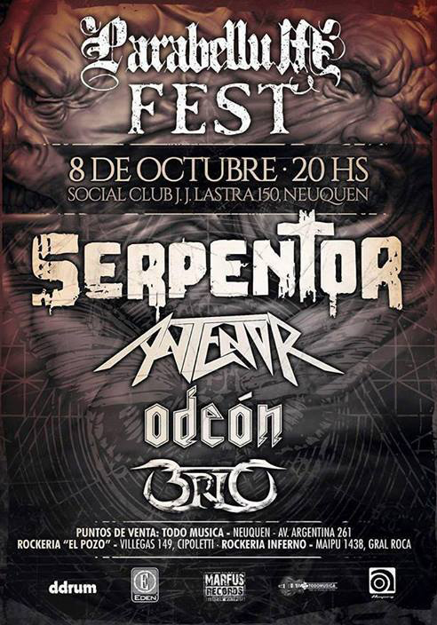 El sábado 8 de octubre, la tropa thrashera del alto valle de Río Negro y Neuquén se reunió una vez más para recibir a una de las bandas más importantes de la escena nacional, Serpentor, en lo que fue el Parabellum Fest 2016.
