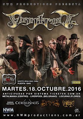 Tuvieron que pasar más de cinco años para que Finntroll regrese a la Argentina. Los fineses son, desde hace más de quince años, una de las bandas más importantes del folk metal, género que pese a sus raíces foráneas ha sido adoptado con fuerza por el público sudamericano. Bandas como Korpiklaani, Elluvetie o Turisas no solo se destacan en los festivales europeos sino que cada vez cuentan con más adeptos por estas tierras. Es en este contexto, y tras una larga espera, que el regreso de Finntroll era muy esperado. En ésta ocasión, el espacio elegido fue el Roxy Live, uno de los mejores de Buenos Aires a nivel sonido.