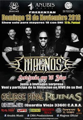 En el año 2006 y luego de separarse de Lörihen, Javier Barrozo formaba lo que hoy conocemos como Magnos, un año más tarde la banda comenzaba a componer su primer disco. “Gritos” Fue editado en el 2008 y así comenzaba la historia de esta banda que el pasado domingo 13 de Noviembre, luego de 10 años se presentaron en Uniclub para grabar un DVD que conmemore esta historia.
