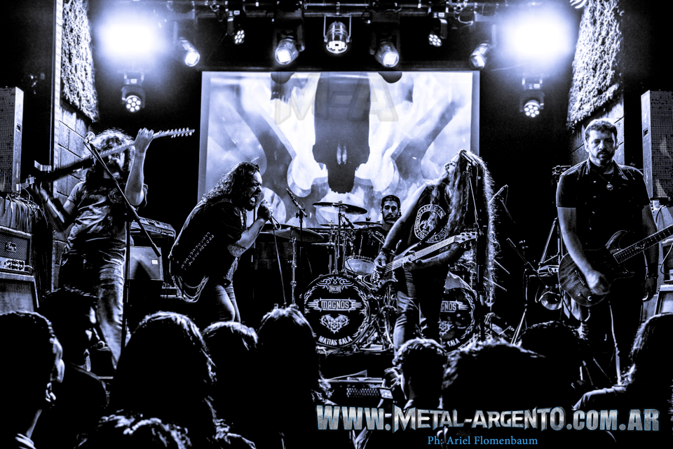 Más tarde se sumaron tres invitados más y así fue como pudimos ver a la formación original de Magnos con Alan Fritzler (Wathcmen) nuevamente en la batería, a Pit Barret (Barilari, Asspera) en el bajo y a Emanuel Lopez (Watchmen) en la guitarra, junto a Barrozo y Eugenio Vela en la otra guitarra.