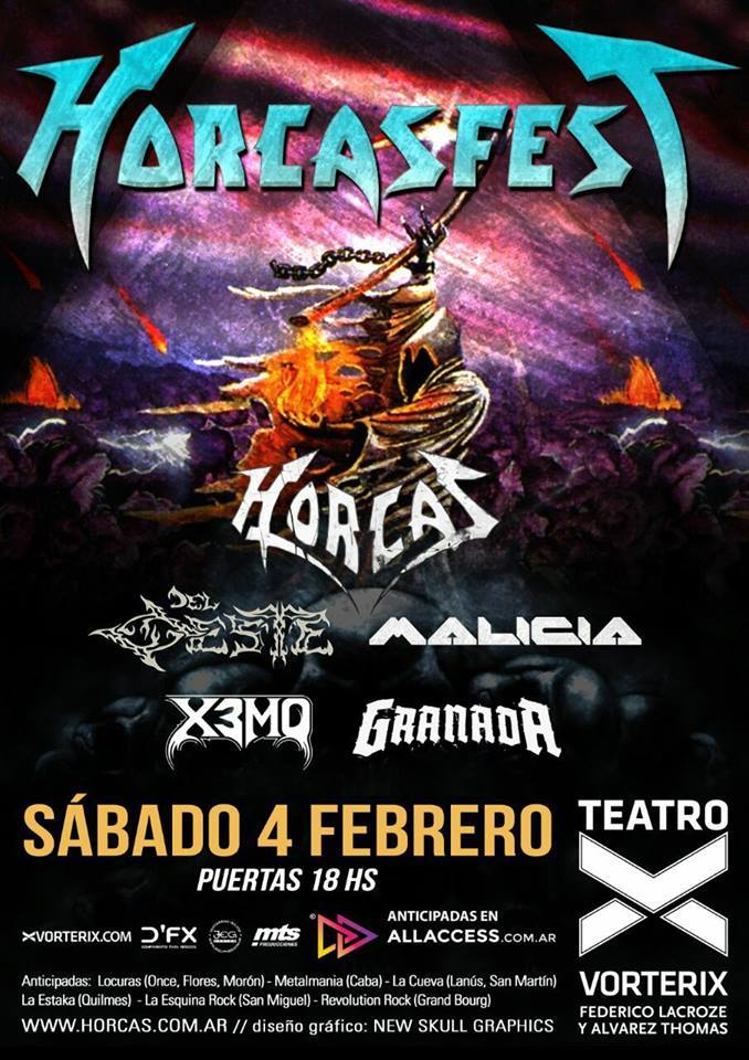 El pasado 4 de febrero se llevó a cabo la primera edición del Horcas Fest en Vorterix con la presencia de X3mo, Del Oeste, Granada, Malicia y Horcas.