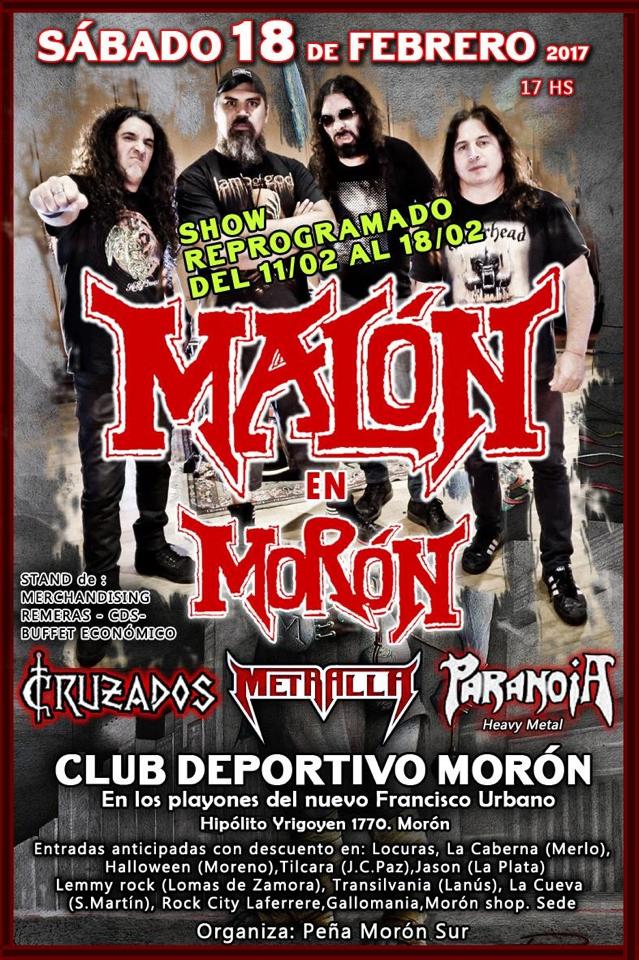 Luego de superar algunos inconvenientes climáticos que devinieron en la postergación de la fecha inicial del evento (estipulada para el Sábado 11 de Febrero), el nuevo Micro Estadio de Morón. Que tuvo el orgullo de ser inaugurado nada mas ni nada menos que por la banda de Metal Pesado «Malon», que dio el puntapié inicial para lo que será una nueva plaza para conciertos de Rock, en el Oeste del gran Buenos Aires.