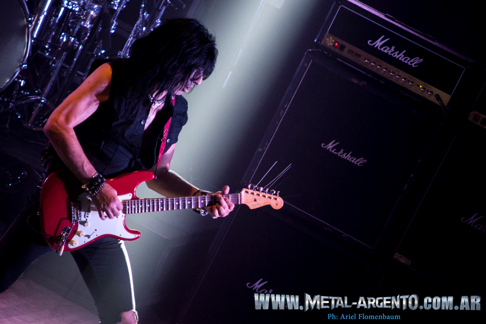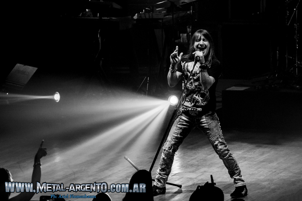 Con un recibimiento tímido por parte del público, quizás debido al estilo del lugar la gente recién se terminó de parar de sus asientos y empezar a corear cuando sonó «Los Chicos Quieren Rock”. Pero luego de que Adrian Barilari anunciara que íbamos a tener una noche llena de Rock y velocidad, empezaron las primeras notas de “Amo del Camino” y todo el recinto enardeció en alaridos.