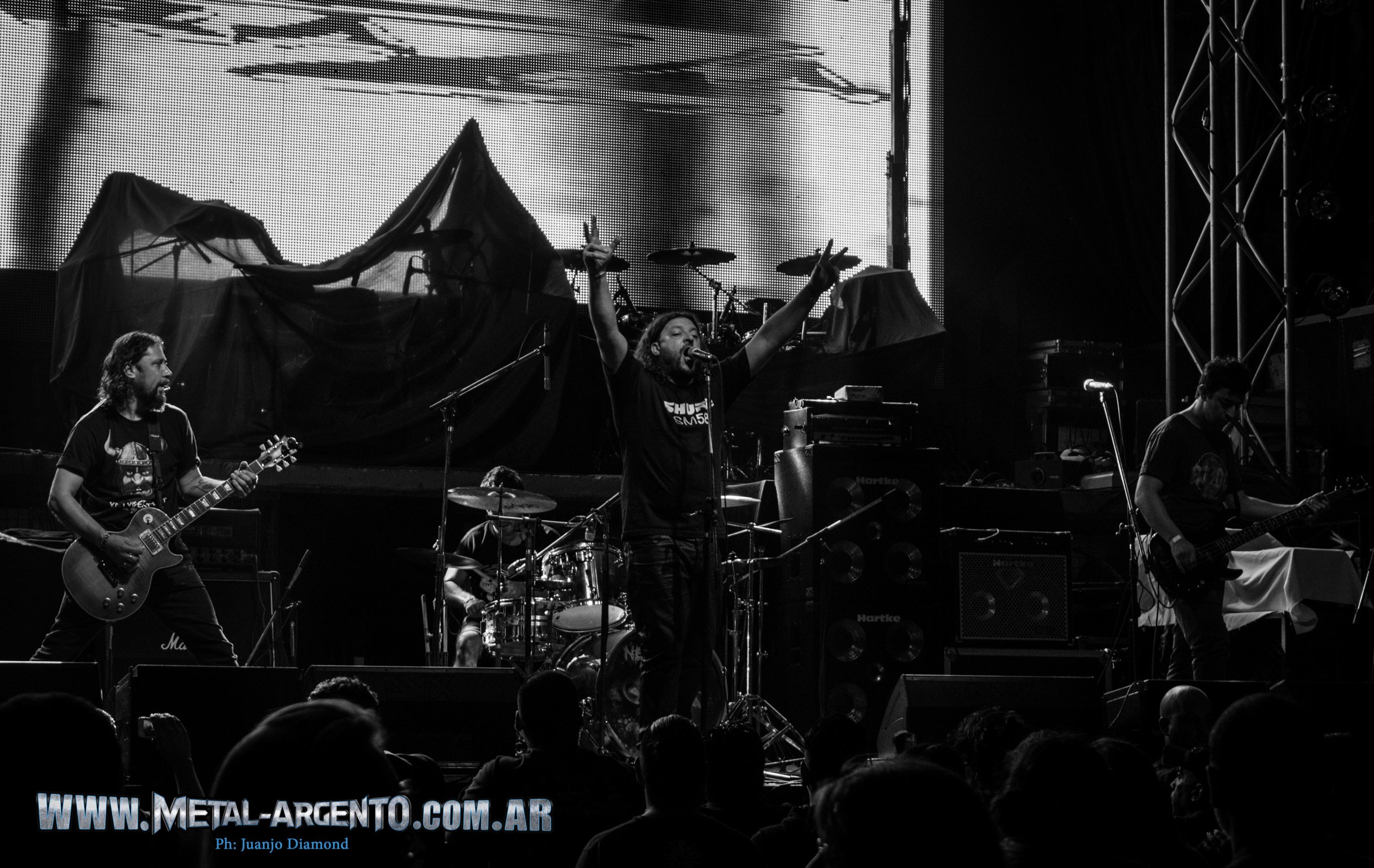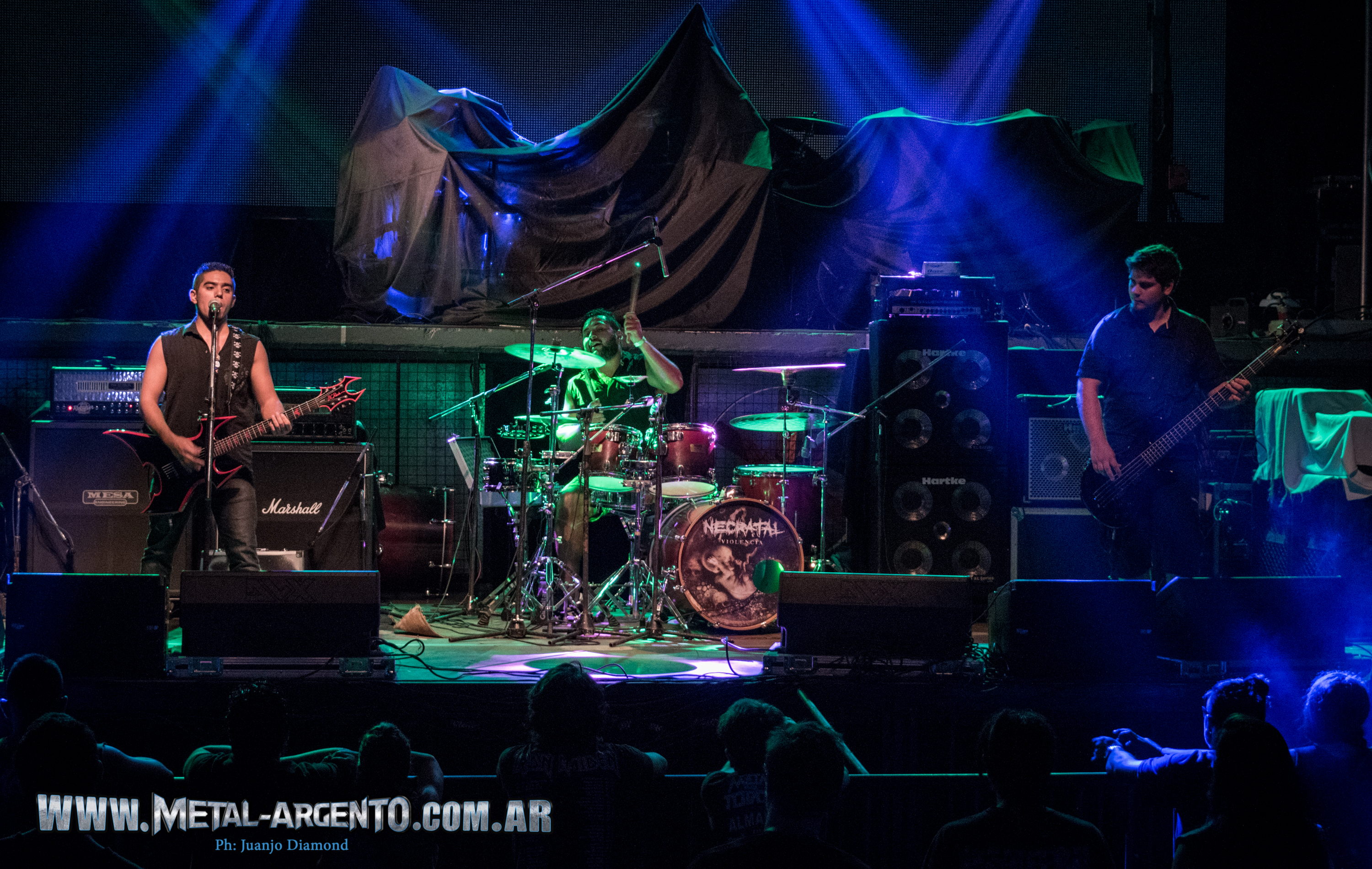 Desde temprano, las huestes metaleras se dieron cita en el lugar para presenciar los shows de todas las bandas invitadas. Así fue que cronológicamente fueron pasando por el escenario principal las bandas “Mi esencia”, “Coraza” y “Necratal” desplegando sus set musicales a puro Heavy Metal. En un escenario majestuoso que contaba con una pantalla gigante de Led en la parte posterior del mismo, dejando leer los logos de las bandas y animaciones en video, en una calidad solemne. El sonido para todas las bandas fue muy bueno, bien parejo y fueron calentando el recinto para aguardar la presentación de las bandas principales.
