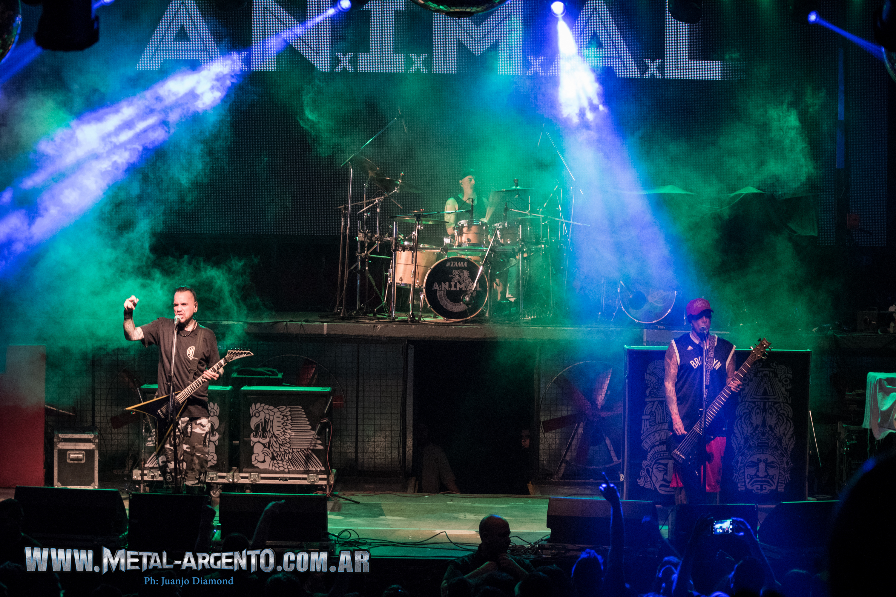 De esta manera A.N.I.M.A.L. arranco su set bien arriba, recorriendo varios temas de su extensa discografía, repasando temas clásicos, como algunos mas nuevos sin dejar decaer el nivel de potencia en cada una de sus interpretaciones. Entre los temas más coreados, se pudo escuchar «solo por ser indios», «mas cabeza para mi pared» y «Barrio Patrón» entre los mas «clásicos» de la banda». Y también se interpretaron temas mas nuevos, o mejor dicho, mas recientes como «Combativo» o «Gritemos para no olvidar» que fueron pogueados de intensa manera por el publico, que dejaban el espacio en el medio para realizar el clásico «Circle Pit».