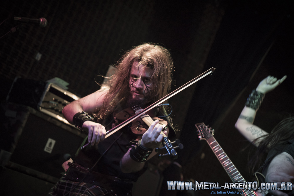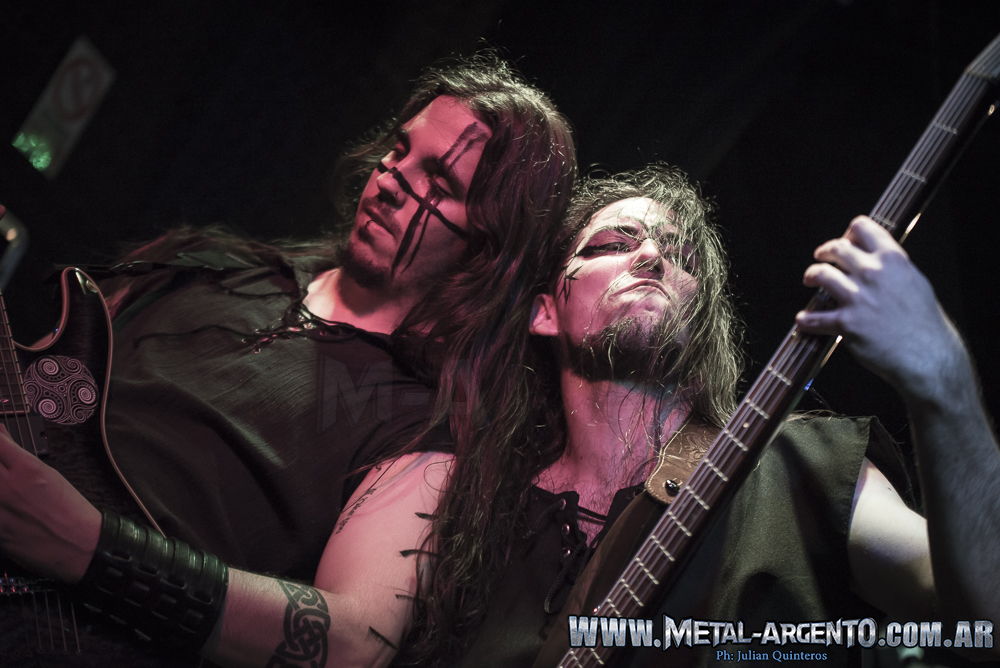 Comenzaron con el mismo orden que en el cd, abriendo con “Leaves of Blood” y “Cernunnos”, como tercer tema sonó “Birth of Gelatia” con el primer invitado de la noche, Santiago Molina tocando la gaita. Siguiendo con el orden sonó “Let’s Folk and Roll” y luego el instrumental “Pagan Feast” con el segundo invitado Gabriel Di Fini de AfterDreams. Y hasta este momento la gente no paró de saltar, cantar y agitar como la banda lo a merita.