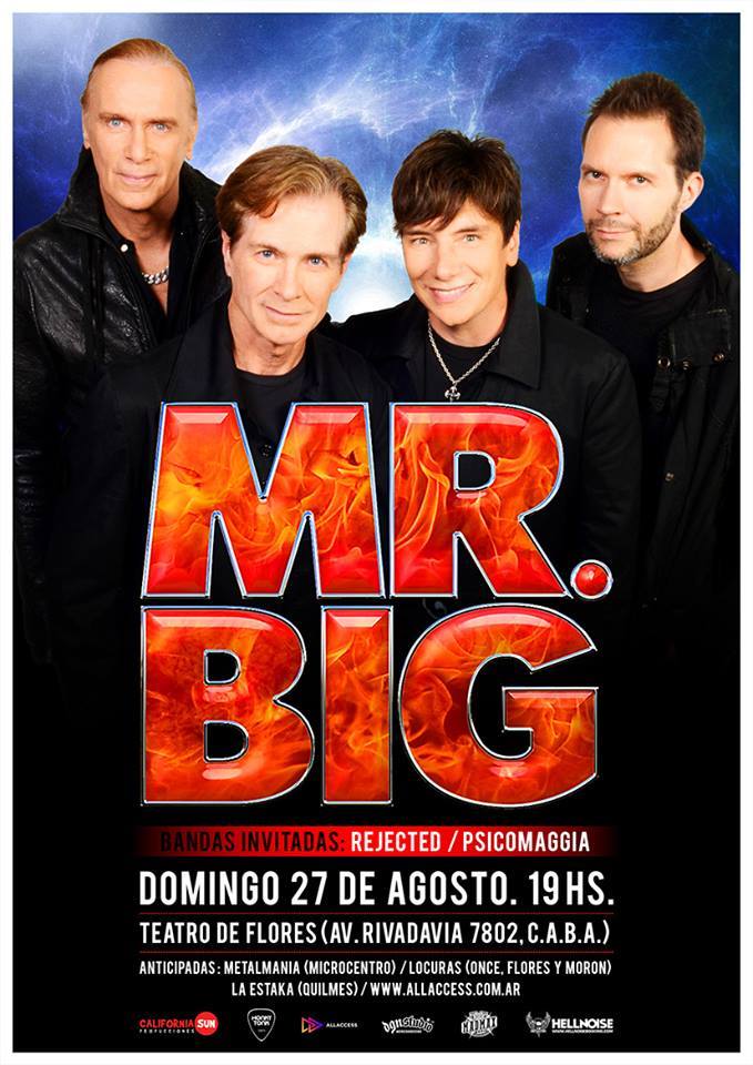 Mr Big regresó a nuestro país en el marco de la gira “Defying Gravity World Tour”, nombre que da título a su última producción discográfica. La cita se llevo a cabo el Domingo 27 de Agosto en el Teatro Flores junto a Rejected y Psicomaggia.