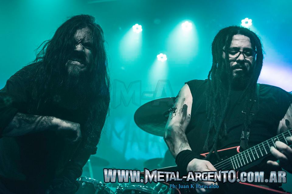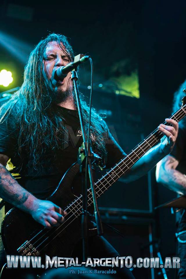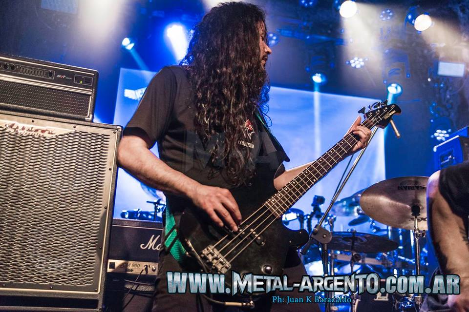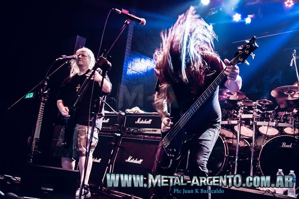 Las luces se apagaron pasadas las 21.30hs , el telón se abrió, la banda salió al escenario saludando con buena onda y predisposición, empezó a sonar a modo de introducción “Ushabti Reanimator” el público gritaba los músicos inmóviles pero con sonrisas hasta que fue el momento. Se subieron los volúmenes de los instrumentos y empezó el ritual antiguo y que mejor manera de hacerlo que con “Sacrifice unto Sebek”, para que el público cante desde un principio haciendo todo el ruido posible; el sonido del lugar empezó un poco bajo pero se acomodó rápidamente dando lugar a que siga el concierto con “Defiling the gates of Ishtar”. La gente no paraba de saltar, agitar y subirse al escenario siendo los propios músicos los que los empujaban del escenario. Después de esto siguieron con “Kafir!” y terminado este tema Karl Sanders pide al público que traten de no subir al escenario ya que era un lugar pequeño y no quieren que la fiesta termine mal así todos podríamos pasar una buena noche, el público captó el mensaje al instante y prosiguió la noche. Cómo la idea de este recital era presentar la nueva placa de la banda “WHAT SHOULD NOT BE UNEARTHED” la banda tocó los temas “Call to destruction” y “In the name of Amun” ambos pertenecientes a esta placa. Tras sonar “The fiends who come to steal the magick of the deceased” fue el momento en el que Brian Parris comunicaba que era el momento de los clásicos empezando con “The howling of the Jinn” y “Keftiu asar Butchiu” para un público que no paro en ningún momento. Ya para terminar la noche sonaron “Sarcophagus” , “Unas slayer of the gods” y el gran cierre fue con “Black seeds of Vengeance”. De esta manera Nile cerró su concierto agradeciendo al público y saludando a los presentes de la noche.