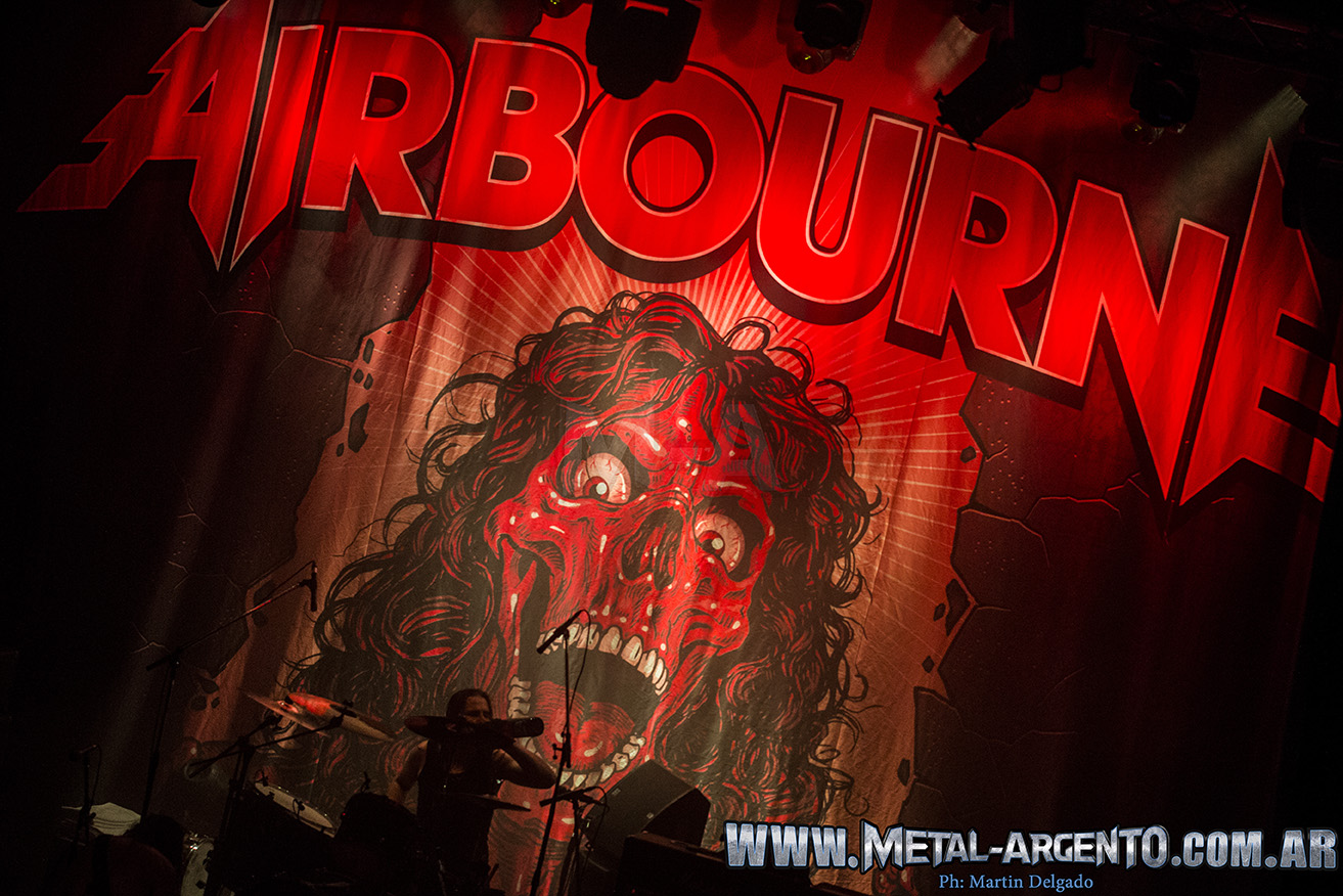 A las 21:30 se apagaron las luces para dar inicio al show. Los australianos salieron a comerse el escenario con “Ready to Rock” con algunos problemas en el micrófono de Joel que fue solucionado en el segundo tema “Too much, too Young, too fast”. Mientras se corregían estos inconvenientes el público acompaño con el clásico “Ole, ole, ole, ole! Airbourne! Airbourne!.