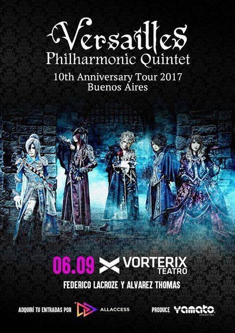 El mundo del Visual Key se enorgullece en traer por cuarta vez, una de las bandas más importantes del Metal Neoclásico Japonés: Versailles en Argentina. Se presentaron en la ciudad de Buenos Aires el 6 de Septiembre en el Teatro Vorterix, siendo una de las pocas ciudades que visitaron en la gira “Versailles 10th Anniversary World Tour” por Sudamérica.