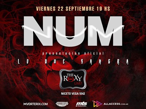 La presentación del nuevo disco de NUM «Lo Que Sangra» en The Roxy Live fue exclusiva. No hubo bandas invitadas a pesar de que las puertas del local abrieron casi dos horas y media antes que comience el show. De alguna u otra manera, el público supo que si al menos hasta las 21 hs el show no arrancaría. Lo supuso bien. Treinta minutos después el telón se abrió y allí estaba la banda dispuesta para la acción.