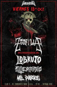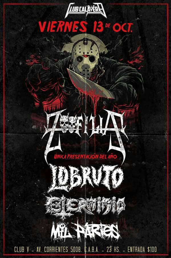 El pasado viernes 13 Zoofilia se presentó nuevamente en Club V junto a Lo Bruto, Exterminio y Mil Partes. Como bien sabemos la Z se encuentra en proceso de grabación de su próximo disco, por lo que esta fue su única presentación en el año.