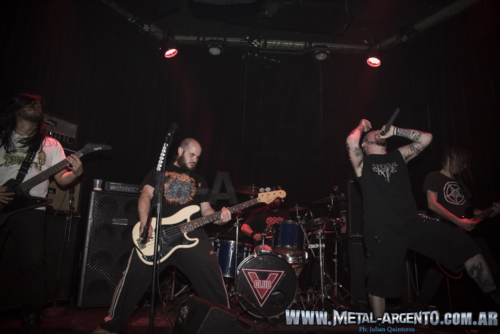 Ya pasados unos minutos de las 3.30hs subió Zoofilia al escenario y comenzó a escucharse “Obligados al Exilio”, de su disco El Orden del Caos, seguido por “Sentimientos” de su disco Zoofilia grabado en 1999. Como mencioné previamente la Z está en proceso de grabación y ese día presentó algunos temas de los que integraran su próximo trabajo de estudio. El primero fue “Samueliminacion” el cual precedía a “Juecesionistas”, luego cortaron con un tema ya conocido de su disco homónimo, “La Máquina” y posteriormente sonaron otros dos nuevos temas “Numerosangrientos” (que ya tuvimos la oportunidad de escucharlo en algún otro recital de la Z, pero todavía no está plasmado en el material discográfico) y “Ajobando el Dolor”. “Inmerso en Caos” fue el siguiente, que dio paso a uno de los temas más esperados, de su primer disco editado en 1993, “Mente en Ruinas”, tema que le dio nombre al disco, sonó acompañado de mucho pogo por parte de los seguidores de la banda y el coreo de los que no se animaron a ir tan adelante. El último tema con el que se despidió Zoofilia de los escenarios por este 2017 fue “Vituperación Irracional Humana”.