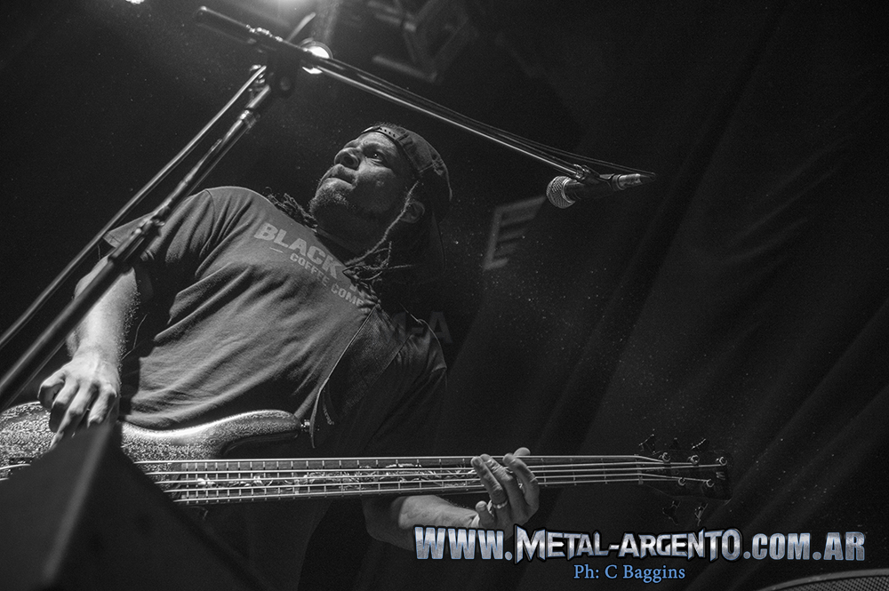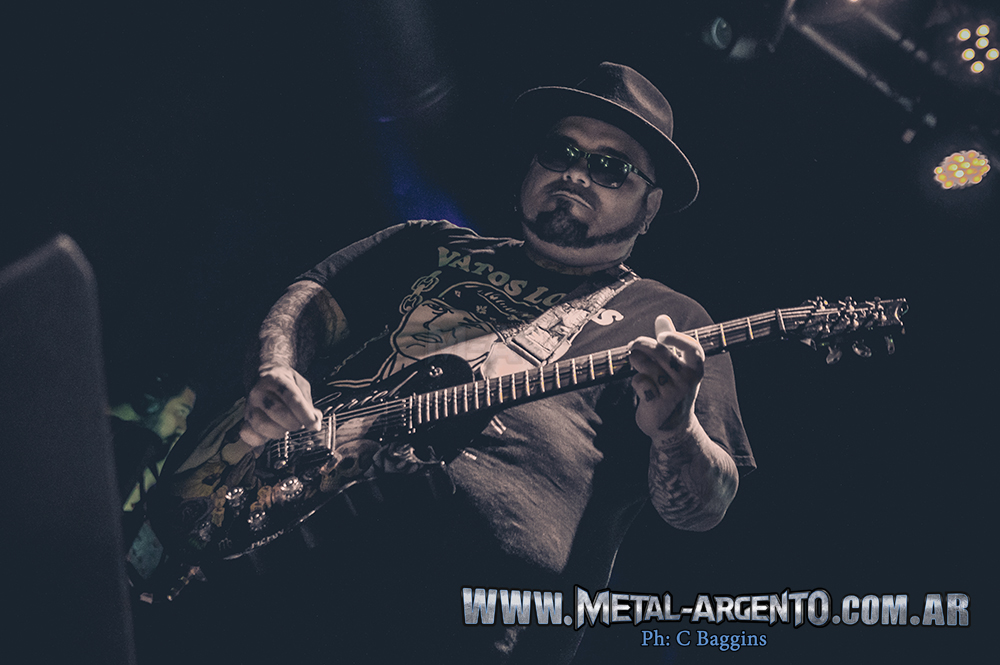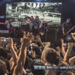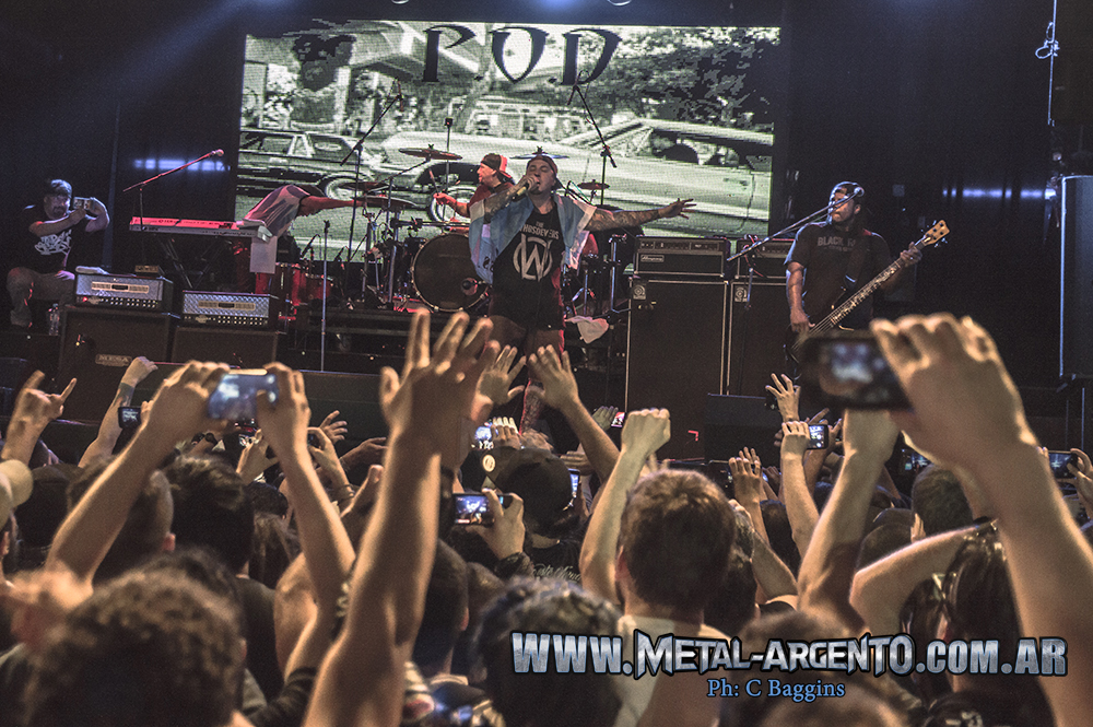 Pasaron los minutos, la tranquilidad en el público le gano a la ansiedad. Un par de veces la música de fondo entre bandas bajó hasta el silencio absoluto, haciendo creer a más de uno que los artistas de cierre iban a presentarse pero no, así fue hasta pasadas las 22.30 hs. Directamente de los parlantes del escenario, la pista “Jump around” de House of pain comenzó a sonar a un volumen altísimo, para apoderarse de la atención de los que ya descreían que esa era la señal definitiva; pero ver para creer dicen y todos vieron como el imponente Traa tomaba su posición con las 4 cuerdas y tras él, el simpático Marcos y su guitarra y finalmente, Sonny, acompañado de su rosario en la mano derecha en todo momento. Eligieron “Messenjah” para iniciar el setlist, la banda con orígenes cristianos, siempre ligando las letras al lado espiritual y lo hacen notar en este show y como lo hicieron en las anteriores presentaciones, recordando la unidad, la amistad y la familia como principio de sus ideales. La emoción del pogo corrió sobre el suelo del local cuando “BOOM” fue interpretado. Así fue como que fueron intercalando canciones del porte de “Set it off” con potentes riffs o “Kaliforn-eye-a”, con esas mezclas ya conocidas de ritmos latinos entre distorsiones y voces elevadas al cielo. Los fanáticos más fieles a la banda y quizá más que a la banda, a la década que comprendió entre 1991 y 2000, más conocida como “los ‘90s”, tuvo su dosis de sorpresa, cuando Andrés Gimenez, voz y guitarra líder de A.N.I.M.A.L. y De La Tierra acompañó con algo de dificultad en la voz -pero no así con la actitud- a Sonny en la ejecución de “Alive”; esta dosis de nostalgia y emotividad se vio reforzada sobre el último tema, de los 18 en total que escogieron para esta parada en su gira, cuando una vez más en la noche, Chester Bennington fue recordado, como un gran amigo y un “familiar que no es de sangre”, con “Satellite”, tema con el cual todos los presentes señalaron hacia arriba preguntando en un inglés más o menos perfecto “Are you there?”.