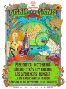 El festival auto gestionado ofreció una gran variedad de géneros musicales comenzando muy temprano de la mano de Hungría, Guacho y Las Diferencias. Finalizando la tarde sería el turno de Morbo y Mambo en el escenario al aire libre y de Atrás hay truenos en el escenario techado. Definitivamente esos truenos se hicieron sentir, ya que promediando las 20hs fue el turno de Poseidotica de cerrar el escenario del patio, con la mala suerte de que se largó una lluvia bastante molesta por lo que la banda solo pudo interpretar el tema “Anfibio”. Luego de esto decidieron parar el show y pasar al escenario techado, adelantando el show de Motosierra para luego poder realizar el show finalizada la presentación de los uruguayos.