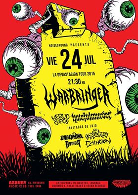 Los thrashers californianos de Warbringer pisaron por primera vez territorio argentino, luego de haber pasado previamente por el continente en países como Perú y Colombia, pero sin recalar en nuestro país. Finalmente se concretó el show en Asbury de la mano de Noiseground, acompañados de los brasileros Nervochaos y Hatefulmurder y varias bandas locales. De antemano ya prometía ser uno de los eventos thrasher del año, para enloquecer a un público que venía un tanto frustrado con las cancelaciones en los últimos meses de bandas como Toxic Holocaust, Municipal Waste o Coroner.