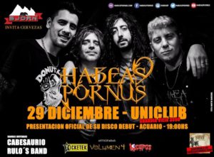 Habeas Pornus, la nueva banda de Hernan Garcia, presentó su disco debut Acuario en Uniclub, el viernes pasado por la noche. Un show corto pero impactante abrió el camino de una banda con músicos con amplia trayectoria ante un nuevo recorrido.