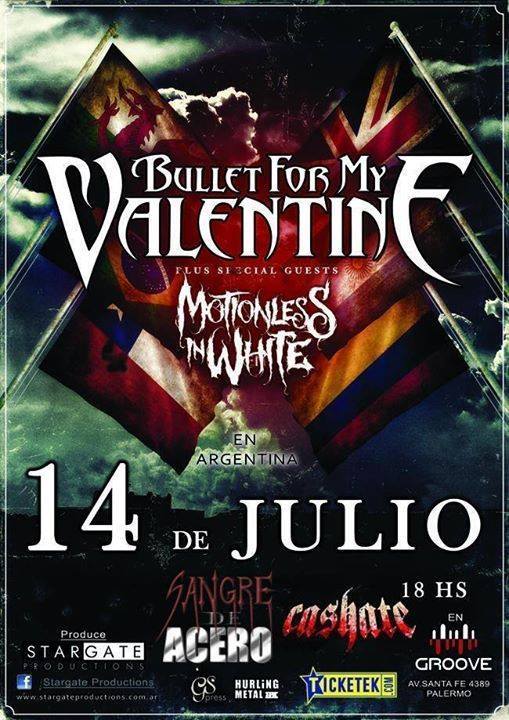El martes pasado regreso a nuestro país por segunda vez, Bullet for my Valentine tras esperarlos tres años desde su última visita. En esta oportunidad con su gira “Rising Hell Tour in South America” junto a Motionless in White acompañados por bandas soportes argentinas como Sangre de Acero y Cashate.