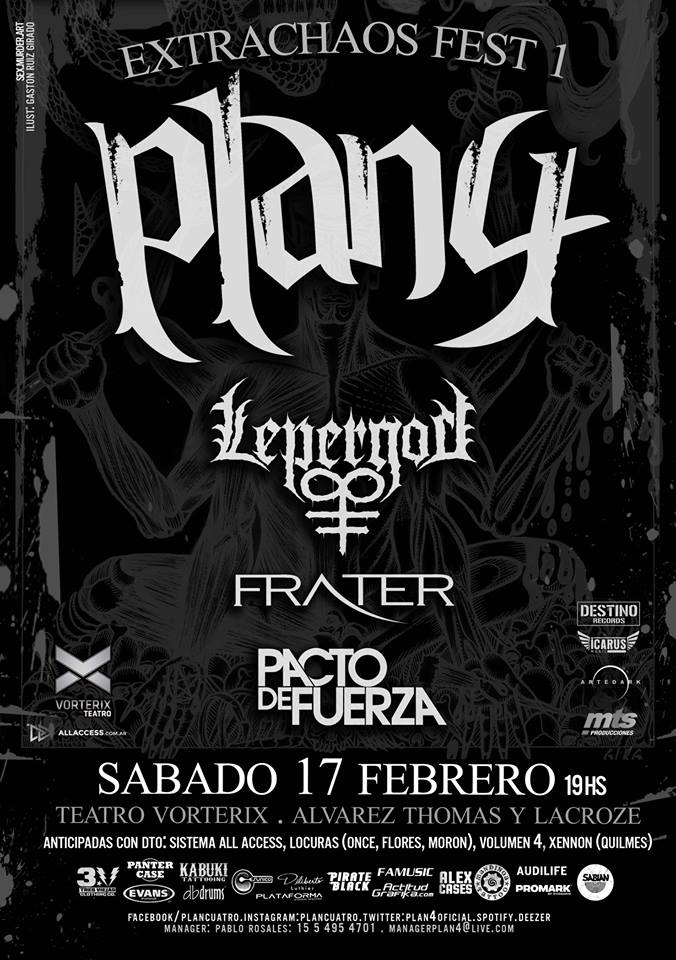 Plan 4 volvió al Teatro Vorterix para presentar canciones de su flamante disco de estudio «Lleva tu mente al limite». El formato del show estuvo dentro del marco del festival llamado Extrachaos Fest 1 que fue completado por tres exponentes del nuevo metal argentino: Pacto de Fuerza, Frater y Lepergod.