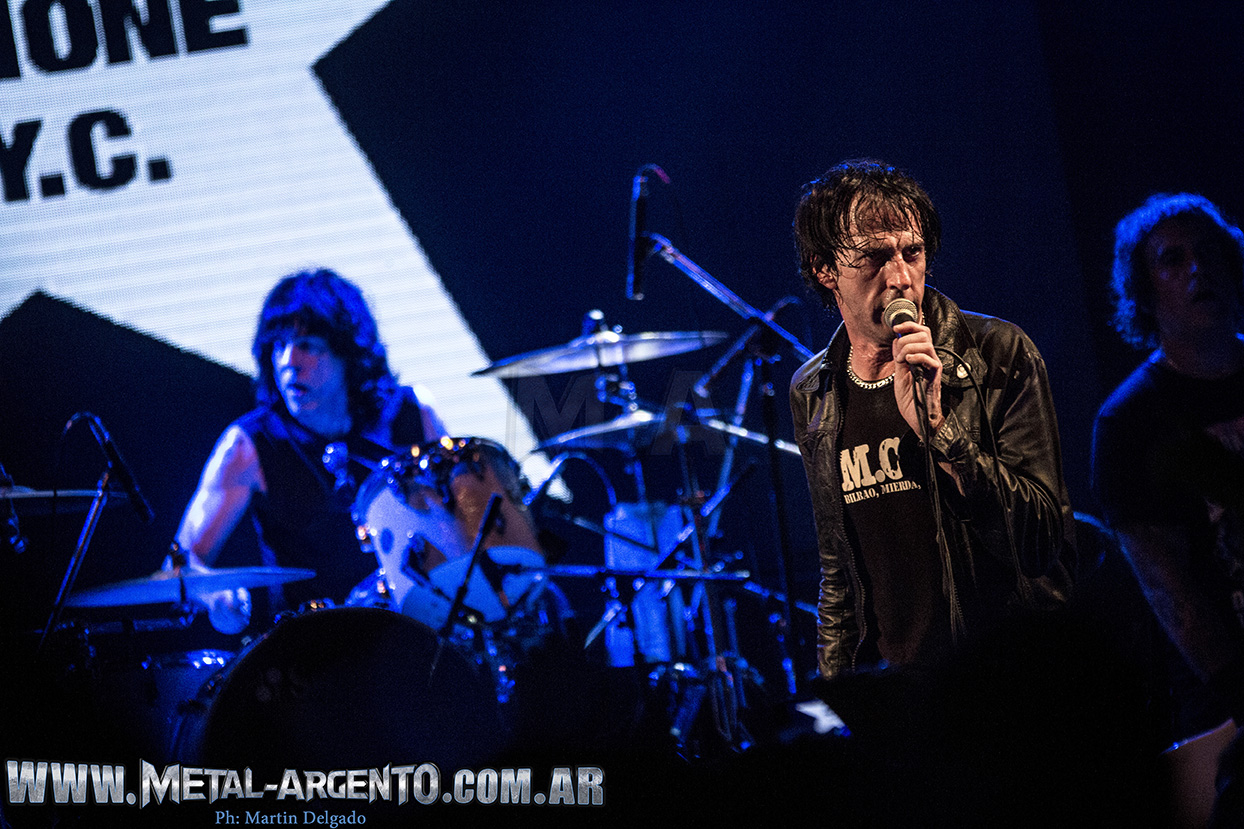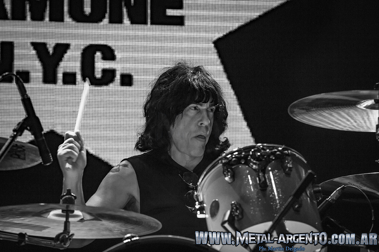 Ya es una sana costumbre para nuestro país que nos visiten los miembros de los Ramones que aún quedan vivos. En el 2017 lo hicieron C. Jay y Richie (de hecho vuelve este año). El sábado pasado fue el turno de Marky que cerro su gira de shows por Argentina en el Teatro Flores. Exactamente a las 21hs, el neoyorquino subió al escenario y sin mediar palabras salvo más que un saludo, comenzó el show con el clásico “One, two, three, four!” seguido de “Spiderman” / “Teenage Lobotomy” y “Psycho Therapy”. Interpretó temas de todos los discos de Ramones salvo Too Tough to Die, Animal Boy y Halfway to Sanity (por razones obvias). Incluso el show tuvo algunas joyitas de Acid Eaters como “My Back Pages”, “Have you ever seen the rain” y la versión de “What a wonderful world” del disco solista de Joey Ramone. También hubo tiempo para invitados en los vientos para interpretar “Do you remember Rock’N’Roll Radio”. Prácticamente no se detuvieron a decir palabras a los fans, solamente se dedicaron a tocar los 46 temas, parando 3 veces para descansar unos minutos mientras la gente cantaba el “ole ole ole” fusionandolo con el hit del verano “MMLPQTP”.