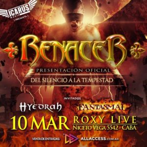 tiempo de inactividad, Renacer marca un nuevo comienzo volviendo a los escenarios para presentar su nuevo disco Del Silencio a la Tempestad. Con este motivo se presentó el pasado sábado en The Roxy La Viola Bar con la compañía de las bandas Instinto, Hyedrah y Fantasmal, que prepararon el ambiente desde temprano.