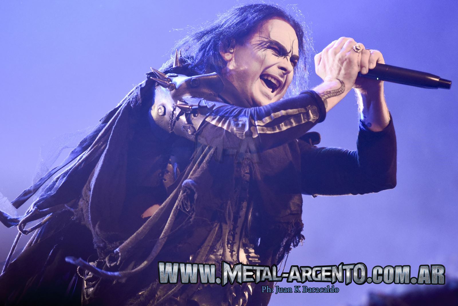 Durante un poco más de hora y medio Dani Filth recordó porque es un emblema en la música extrema. De cuerpo pequeño, pero con un caudal vocal amplio aseguró que todavía está en óptimas condiciones para seguir rugiendo con su particular vozarrón de black metal.