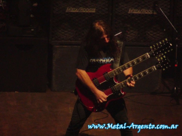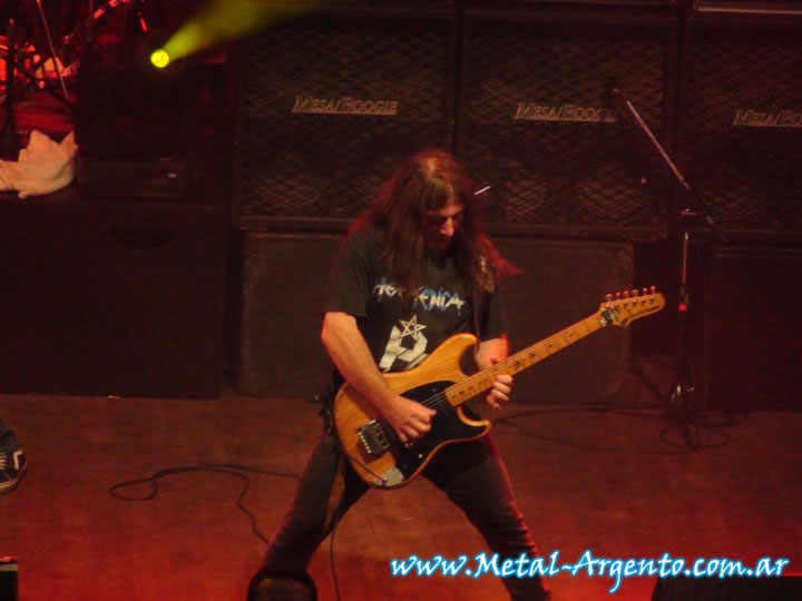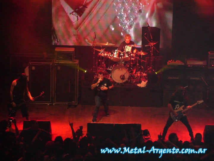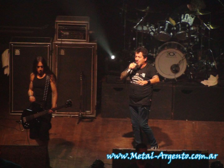 A eso de las 19hs se abrieron las puertas y de a poco la gente se fue acercando al lugar un rato antes de empezar el concierto se proyecto en una muy bonita pantalla un documental de V8 pero debido al poco ritmo y la poca producción del video, sumado al audio que era inentendible resulto aburrido y largo, una lástima, ni bien terminado el video, Salieron a la cancha Rowek, Romano, Yañez Y Meza para arrancar con «Momento de luchar» terminando con las espera del público, siguieron con «La mano maldita » tema que creo que jamas escuche interpretar por ninguna banda, continuaron con «Ciega Ambicion» y «Tiempos Metalicos», mientras la banda tocaba en la pantalla gigante , pasaban imágenes y pequeños fragmentos de películas un tanto acordes a los temas, para ilustrarlos y acompañar, es por eso que mientras en la pantalla veíamos fragmento de los saqueos del 2001 el tema interpretado era «Cautivos del Sistema» , un clásico de clásicos de V8 que por supuesto enloqueció al publico, le siguió «A Través de los tiempo» tema grabado para el tributo de 1996 , mientras en la pantalla se veían fragmentos de El exorcista arranco «si puedes vencer al temor», tema para el cual el Tano utilizó la guitarra doble de Osvaldo Civile, el próximo fue «Ideando la Fuga» el tema que siguió fue un tema del último disco de V8 «Antes que los viejos Reyes», el sonido fue bueno algo a veces difícil en este lugar, «Parcas Sangrientas» fue el próximo, hubo tiempo para un solo de bateria de Rowek, y a partir de acá se vendrían los temas mas festejados por todos, «muy cansado estoy» tema esperadísimo por todos «voy a enloquecer», uno tras otro se sucedieron todos los clásicos, sin dejar respiro «lanzado al mundo de hoy» uno de los mas festejados y «hiena de metal» para el que Walter Meza pidió que formaron un circulo antes de empezar el tema , siguió «brigadas metalicas» donde el teatro estalló, para dar comienzo al final, se cerró el telón y luego de unos minutos volvieron con «Deseando destruir y matar» el último tema como ya era sabido fue «destruccion» donde Meza arengo y salto más que nunca en toda la noche, lo que le costo un porrazo , el tema fue el mas festejado y pogueado por la gente y coronó la noche de sábado. Fue un show entretenido, la hora y media de concierto se pasó volando y donde el sonido acompaño. Como comentaron esa noche ese concierto fue grabado por lo que más adelante será editado en DVD.