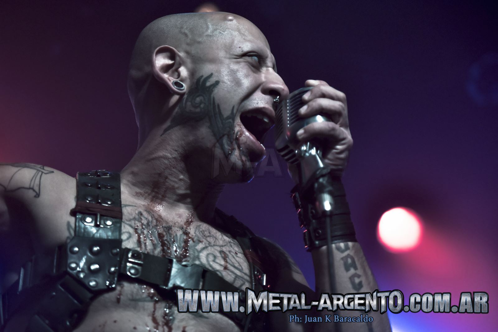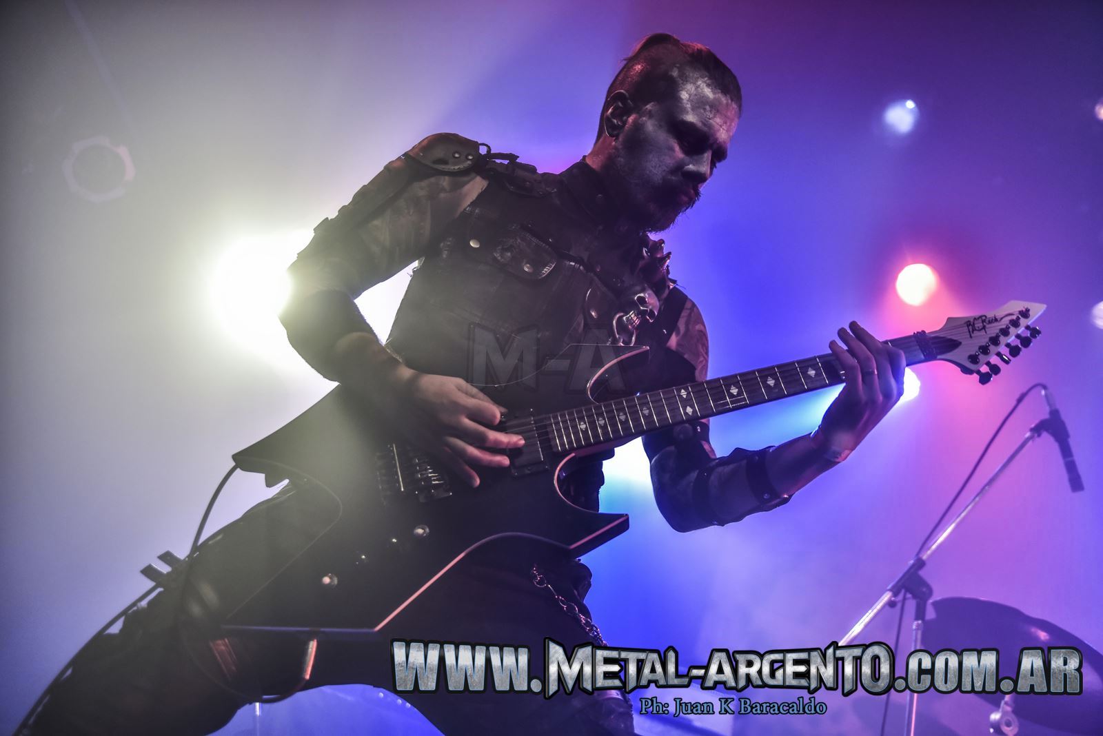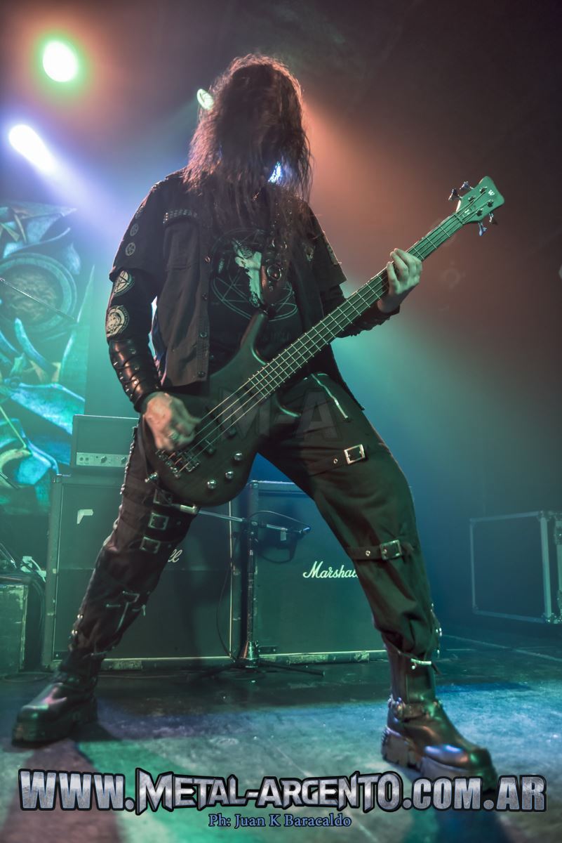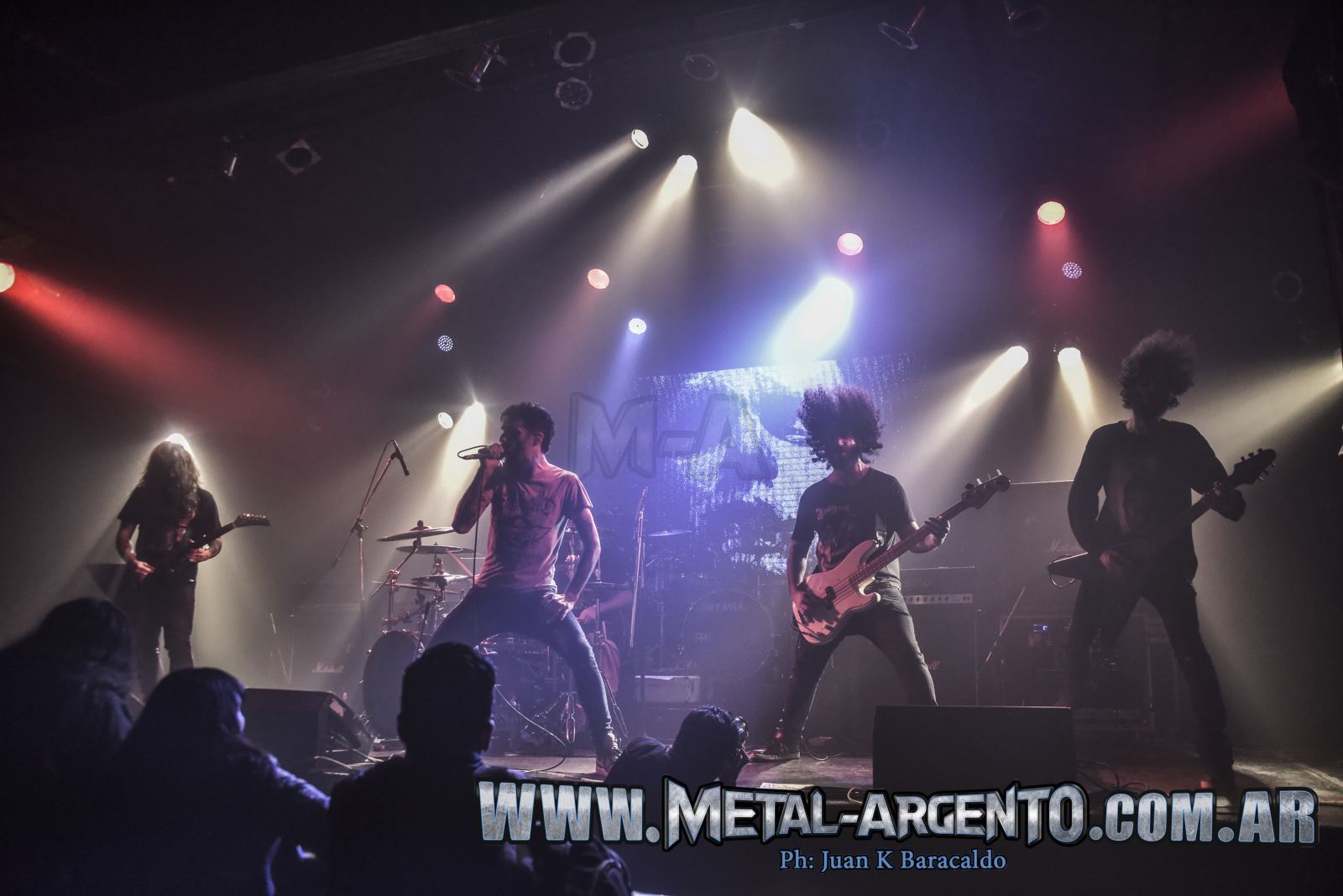 Victimario subió al escenario a las ocho en punto. Su show inicio con el tema “Skill to Kill”, seguido de “My founder” y “Aftermath”. La banda de Sergio Chaile (Guitarras), Lucas Coronel (Bajo), Gonzalo Aguilar (voces) y Pazuzu Nah (bateria), hicieron mover la cabeza a más de uno, aunque todavía había pocas personas, deleitaron a la afición presente. La particularidad de la banda fue mostrar algo diferente, el uso adecuado del corpse paint – propio del blac metal – en el género del death/thrash, es algo que no es usado generalmente. El único que dio a generar otra estética distinta y más concreta fue el vocalista, el cual genero una propuesta y marca personal que transmite la rebeldía y oscuridad del género. Él tiene implantes con forma de cuernos en su cabeza y el uso de lentes blancos en sus ojos, para generar teatralidad, lo necesario para compactar a la banda de manera escénica. Musicalmente fueron crudos y poderosos, con guitarras aguerridas, destrozando la batería y una voz con potencia adecuada. Además de los temas mencionados anteriormente, interpretaron “Paraphilia” y “Eleven”, la cual sería su canción final y darían paso a la última banda soporte de la noche.