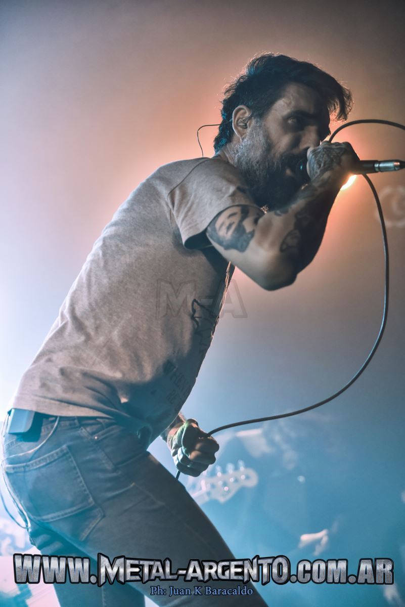 Descarnado fue la primera banda en abrir el show; los bonaerenses integrados por Ivan Suarez (Vocalista-Guitarra), Ulises Ochova (Bateria), Brian Di Franco (Bajo) y Nicolas Alonso (Guitarra), presentaron su material con gran sonido. “Niño Zombie” fue su canción inicial, de su álbum homónimo publicado en 2015 y terminaron su show con “Atemporal” el cual da nombre a su nuevo EP. Además interpretaron canciones de las cuales estuvieron “Cerberus Infected”, “Antimateria”, “Diabolico” y “Oymyakon”, lastimosamente para ser un día de semana y presentarse tan temprano la banda, la cantidad de público fue nula.