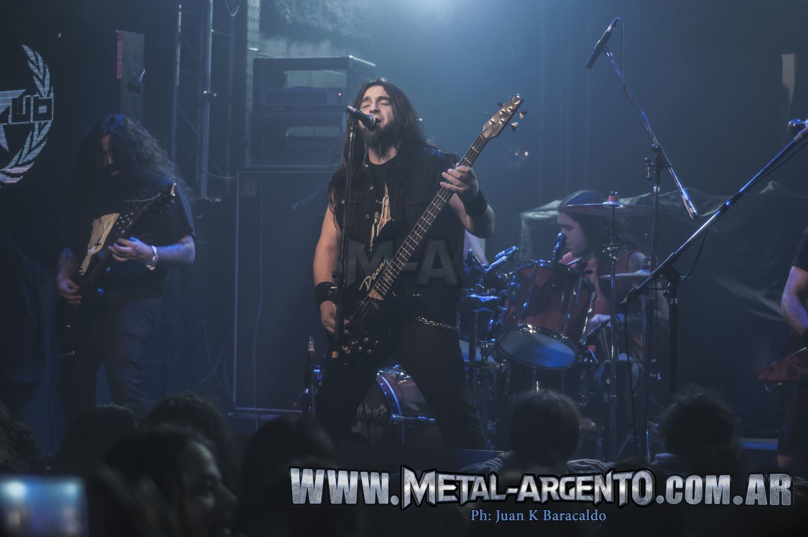 A las 20 hs se presentó Castigo banda oriunda de la zona oeste que se encuentra compuesta por Fernando Pérez en bajo y voz, Cristian Monzón en batería y José Ojeda en guitarra. Quienes se encuentran difundiendo “In Mortem Aeternum” disco que lanzaron en el 2017. Castigo con gran potencia inició con “Marginados” y “Séptimo Zen” continuando con “Esclavos del Dolor”, “Devorando oscuridad”, “Destierro” finalizando con “Desaparecer”. Castigo tuvo muy buen desarrollo del show como también lo fue su sonido generando que el público paulatinamente se contagie de la energía que irradiaban.
