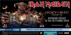 Hay pre-venta exclusiva para clientes BBVA Francés desde el Martes 13 de Noviembre a las 12 PM y la preventa general 1 comenzará el Viernes 16 de noviembre a las 12PM a través de www.livepass.com.ar Como siempre, habrá una pre-venta exclusiva para los miembros del club de fans de IRON MAIDEN. Revisa www.ironmaiden.com para más detalles. Tanto la gerencia de IRON MAIDEN como su promotor, MOVE Concerts, instan al público a que solo compres entradas de la agencia autorizada que se menciona arriba. Para más información, visita www.moveconcerts.com