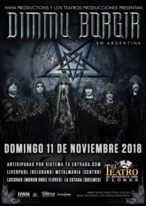 Después de 7 años, Dimmu Borgir volvió al país en marco de presentación de su ultimo material «Aeonian» lanzado en Mayo de 2018. El evento se llevó a cabo en el Teatro Flores el pasado domingo 11 de noviembre.