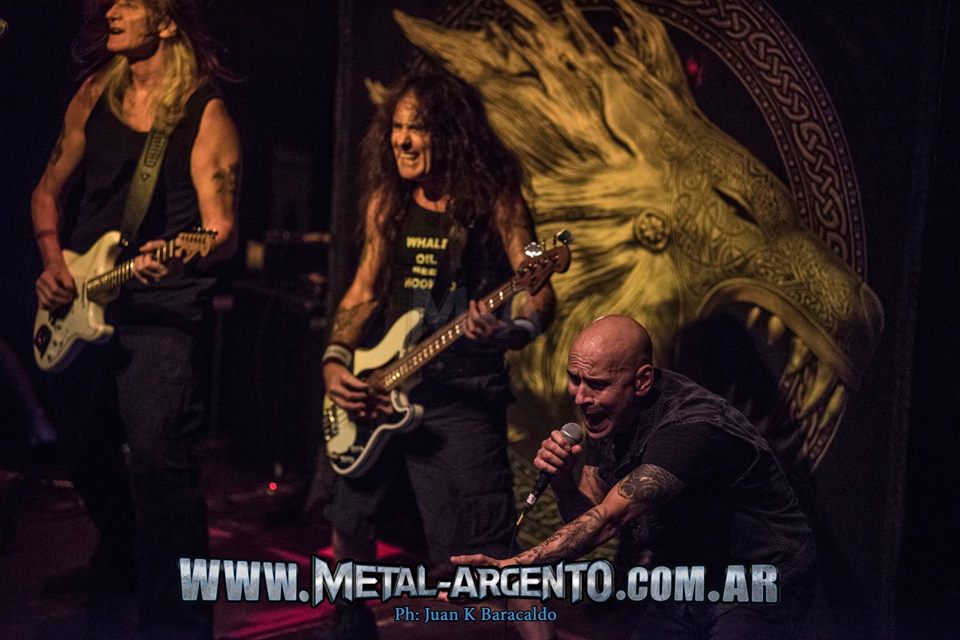 A las 21.15 horas llegó el turno del León Británico ¿Y qué fue lo que se vio? Básicamente lo que se sabía de ante mano; estas canciones hardrockeras que en el disco dejan un gusto con sabor a poco en vivo cobran más fuerza. Quizás como mejores ejemplos sirvan “The Chosen Ones”, “These Are The Hands” o “Us Against the World”. Tienen melodías, ritmos y estribillos contagiosos, y el puñado de fans que ésa noche se acercó a San Telmo las disfrutó plenamente. También es necesario mencionar que las canciones noveles como “Spit Fire” o “Bible Black”, las cuales formarían parte del segundo disco próximo a editarse, pareciera ser que tienen más Hard que Rock y ése fue un factor que también sumó puntos. Lamentablemente lo que sigue tirando atrás a esta banda, y como también se sabía de antemano, es su cantante Richard Taylor. Su cansina voz que en el disco produce efectos soporíferos en el oyente no mejora mucho en vivo. Y lo más grave aún que para dirigirse a la audiencia también usa esa misma tonalidad casi moribunda, como si pronunciar cada palabra le implicara un esfuerzo desgarrador. En cuanto a sus dotes como frontman, podemos decir que el pelado se queda en buenas intenciones; quiere ponerle onda pero le falta mucho para contagiar emoción. Si quisiéramos pensar malintencionadamente uno bien podría suponer que para este proyecto paralelo Harris no quiere perder protagonismo o simplemente no quiere tener los problemas que tiene en su banda principal al lidiar con un ego tan inmenso como el de Bruce Dickinson. Pero la pregunta lamentablemente se volvía recurrente con el correr del show: ¿tanto le cuesta a Harris encontrar un frontman que esté más adecuado para darle otro vuelo a sus canciones sin que esto se torne en una lucha de egos? O todo esto quizás simplemente sean conjeturas personales; Steve se siente feliz así y los que nos hacemos problema somos nosotros. Porque de eso no tengan ni un gramo de duda: Steve Harris está siempre feliz arriba de un escenario. Verlo despedazar el bajo con sus dedos; como también verlo recorrer este pequeño escenario con la misma intensidad y emoción que cuando se presenta en escenarios más extensos, no importa si está tocando para 400 o para 40.000; la emoción que desborda por parte de un hombre que ya pasó los 60 años, que no tiene que probarle más nada al mundo, y que toca con las mismas ganas y pasión como si se tratara de una adolescente que quiere salir a comerse el mundo entero; todo eso de por sí ya garpa la entrada. Y honestamente ésa es la mejor postal que nos podemos llevar de este British Lion en Argentina.