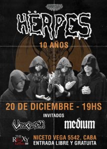 Quedan pocas hojas en el calendario del 2018, pero el año no quería esfumarse sin dejar un último recuerdo forjado en acero. Herpes festejó su primer década y para dicho evento organizaron una juerga de proporciones históricas, una celebración no solo de la banda sino del underground local en general. ¿Recital un jueves? Si, recital un jueves en un Roxy repleto de espíritu pendenciero y aliento a cerveza.