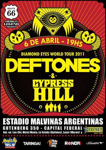 Deftones se presentó por tercera vez en nuestro país. La primera visita de la banda fue el 24 de enero de 2001 en el estadio Velez Sarsfield (junto a Red Hot Chili Peppers) y la segunda, el 12 de febrero de 2007 en el estadio Luna Park. Pero fue la primera visita con nueva formación. Formación alterada debido al gravísimoaccidente automovilístico que protagonizó el bajista Chi Ling Dai Cheng el pasado lunes 3 de noviembre de 2008. Su lugar fue ocupado por el siempre efectivo Sergio Vega (ex-Quicksand)