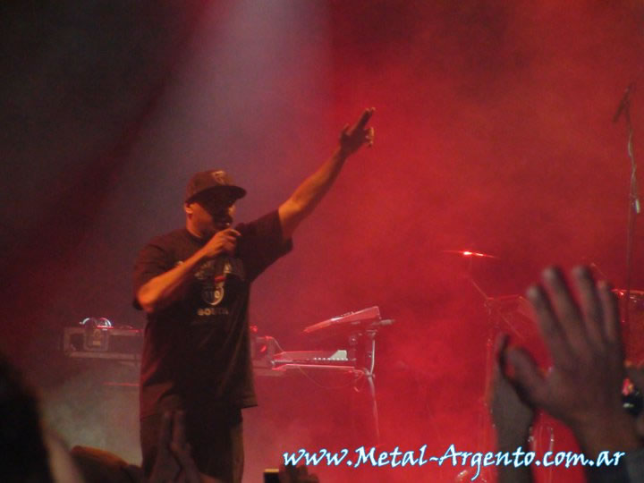 Alrededor de las 20:15 o 20:30 (sinceramente, no recuerdo… a estas alturas, el nivel de tetrahidrocannabinol en el ambiente era altísimo) las luces se despidieron momentáneamente para que Cypress Hillpise nuevamente un escenario argentino. La banda forma con el eterno Capitán Marijuana o «the most highest man on Earth» (según Sen Dog, su co-equiper en el micrófono) B-Real en voz, DJ Muggs tras las bandejas, Eric Bobo en percusión y el ya mencionado Sen Dog, claro. Cypress Hill aprovechó la excusa del Loolapalooza, festejado en el país transandino, para cruzar la frontera y presentar «Rise Up», su primer disco desde 2004.