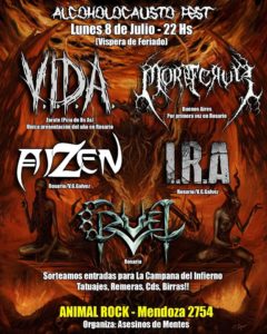 Dos referentes del Death Metal bonaerense se presentan, por primera vez juntos, en la ciudad de Rosario. V.I.D.A. y MorFeruS llegarán a la ciudad santafecina para presentarse en el marco del «Alcoholocausto Fest», evento que tendrá lugar en el reconocido venue de la zona, Animal Rock (Mendoza 2754)