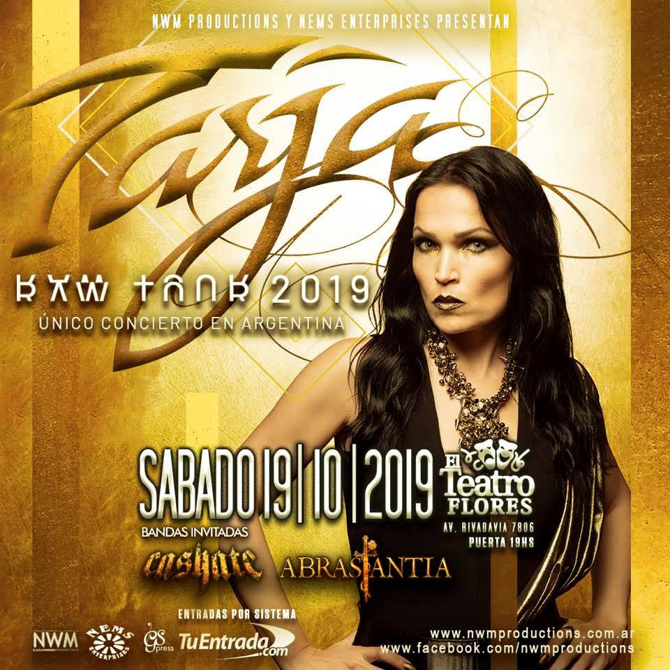 Tarja regreso a Buenos Aires para arrasar con su nuevo disco Raw (2019). La noche se llevo a cabo el sábado 19 del mes vigente en el Teatro Flores con las bandas nacionales soportes Cashate y Abrasantia.