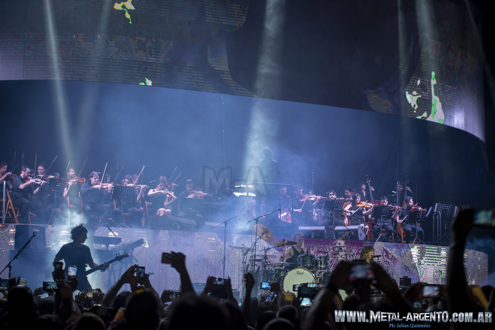 Tras un par de temas más, y un receso con imágenes de la banda de estos 32 años de carrera, con el recordado «negro» quien fue ovacionado cada vez que apareció en pantalla. Era momento ideal para lo más esperado de la noche, las pantallas se abrieron al medio dando pie a la orquesta con «La llave de la puerta secreta», «El guardian de la luz», «Sinfonía fantástica», «El sueño de la gitana». Culminando con «La leyenda del hada y el mago» y «El último ataque», pero sin antes olvidar las palabras que dijo Walter Giardino «Gracias a los medios presentes, no somos de esas bandas que pagan por aparecer en los medios, no es lo nuestro. Gracias a todos ustedes por permitirnos ser rockeros, seguiremos siendo rebeldes hasta nuestro último suspiro».