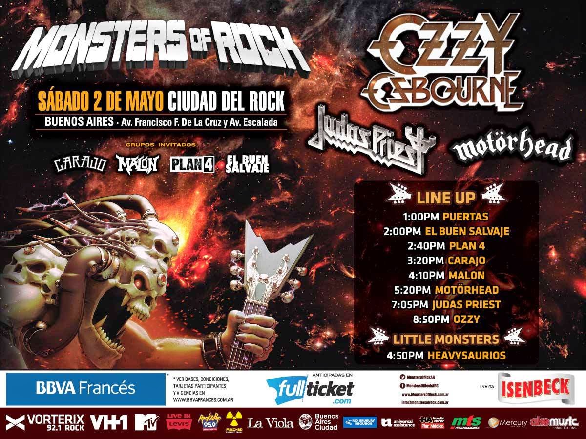 A casi veintiún años del primer desembarco del Monsters Of Rock en Argentina, llevado a cabo el 2 y 3 de septiembre de 1994 en el estadio River Plate, el mítico festival resurgió de las cenizas cual Fénix casi con los mismos protagonistas de aquel entonces. La cartelera de la edición 1994 incluyó a Black Sabbath, Kiss, Slayer, Hermética y Gatos Sucios, mientras que la nueva y séptima edición local del festival incluyó a Ozzy Osbourne, Judas Priest, Motörheady Malón, Carajo, Plan 4, El Buen Salvaje y Heavysaurios como tentempié local. Como representante de Black Sabbath, estuvo presente el Príncipe de las Tinieblas (también conocido como Ozzy Osbourne) y como representantes de Hermética, nada más ni nada menos que tres cuartas partes de la H, es decir Malón.