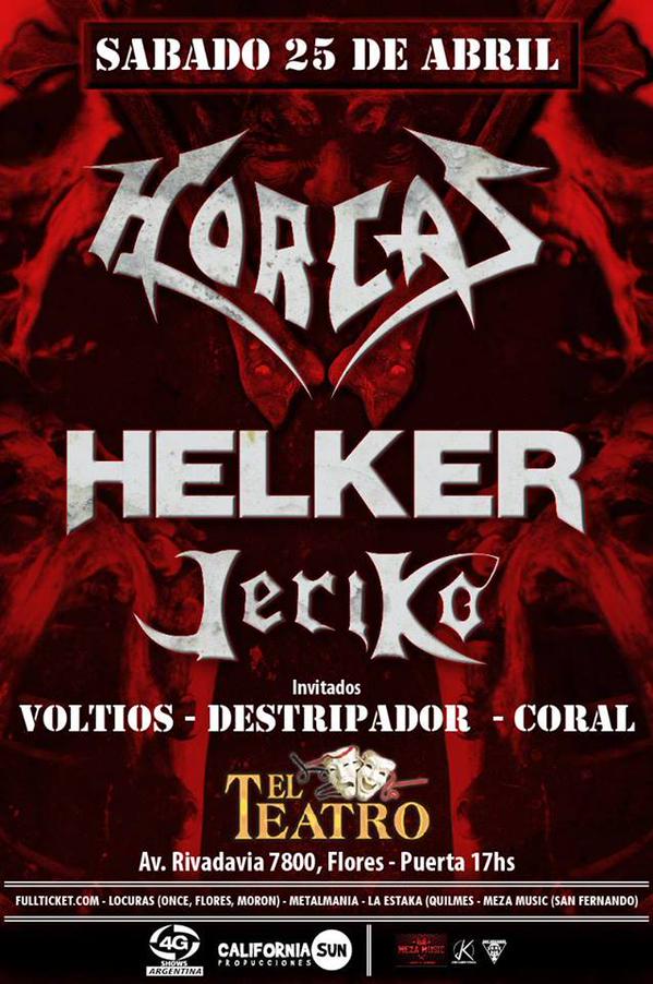 El sábado 25 de Abril arribé al Teatro Flores, minutos antes de las 20 hs. para presenciar la gran fiesta del Heavy Metal nacional que allí se desarrolló. Aunque la apertura de dicha fiesta fue llevada a cabo antes de mi llegada, de la mano de las tres bandas invitadas: Voltios, Destripador y Coral.