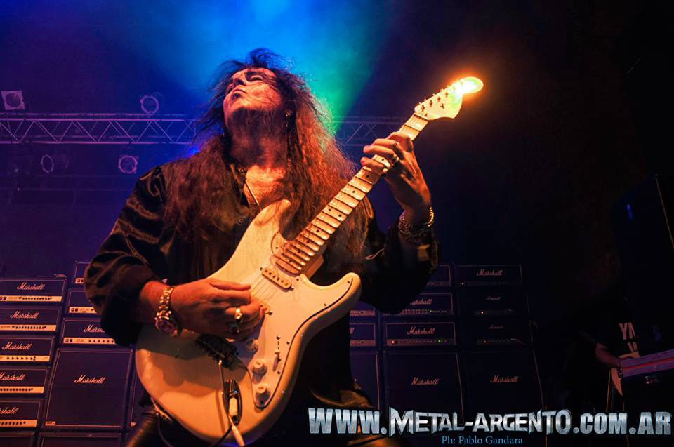 “Olé olé, gordo, gordo” vociferaba gran parte de la audiencia en ovación al guitarrista que, además de ejecutar mil notas por minuto, se mueve sin cesar por todo el escenario, arrojando púas al público y malabareando con su instrumento. En lo que fue una lista muy similar a la del 2013, prosiguió con las enganchadas “Overture/From a thousand cuts/Arpegios from hell”, mostrando todo su talento en su máximo esplendor. Tomando la acústica por primera vez, llegó “Seventh sign” de su disco de 1994, muy coreado y festejado por los presentes. Otro gran momento de la noche fue con la sucesión de “Badinere/Adagio/Far Beyond The Sun”, con extensos solos de carácter épico y homenajeando a Bach y Paganini con las dos primeras secciones. Nuevamente con la acústica sonó “Dreaming”, del álbum Oddysey, sin dudas uno de sus discos más clásicos. Otro medley más ejecutado estuvo compuesto por “Into Valhalla / Baroquen’ Roll / Masquerade”, a cuyo término el sueco no dudó en arrojar su stratocaster por los aires hacia su asistente.