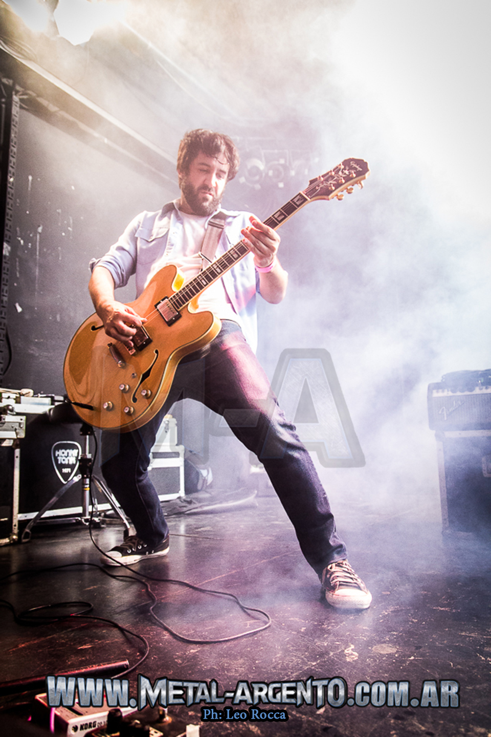 Al arribar al Roxy a las 21 horas me sorprendió encontrarlo casi totalmente vacío, aunque pronto se empezó a poblar y a las 21:45 comenzó Gripe ante un importante caudal de público. El trío conformado por Fernando (guitarra y voz), El grillo (bajo y voz) y Juha (batería) deleitó a los presentes durante media hora con su propuesta enfocada en el stoner pero con una amplia versatilidad para adoptar diversos sonidos. Basaron el repertorio en su última producción llamada “La revolución permanente” (2014) del que además del tema que le da el nombre sonaron “Elementos de elevación”, “Sublimato” y “Bramuro de Pancuronio”. Este EP los posicionó para un 2015 con mucho crecimiento que les depara la presentación como soporte de la leyenda del stoner rock Yawning Man (USA) y su debut en el Noiseground Festival.