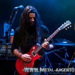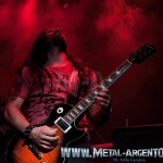 A las 21:00 hs fue el turno de que nuestros ilustres visitantes salgan a escena, preparados para recorrer su discografía sin dejar prácticamente disco sin referenciar. El arranque con clásicos como ‘Séptima Estrella’, ‘Indomable’ y ‘Sangre de Reyes’ hizo delirar a los presentes elevando las pulsaciones y dejando bien en claro el potencial que la banda tiene en vivo. La sólida base conformada por Roberto Gonzalo en el bajo y David Carrica tras los parches apuntaló cada tema permitiendo el lucimiento de sus compañeros. Grata fue la sorpresa que nos llevamos al ver por primera vez en vivo en nuestro país al guitarrista Eduardo Zamora, reemplazante de un histórico como Arturo Morras, a quien se lo nota perfectamente acoplado a la banda, demostrando todo su talento. Juanan San Martin aportó el toque épico desde los teclados y Ángel San Juan se encargó de poner el sello con su voz.